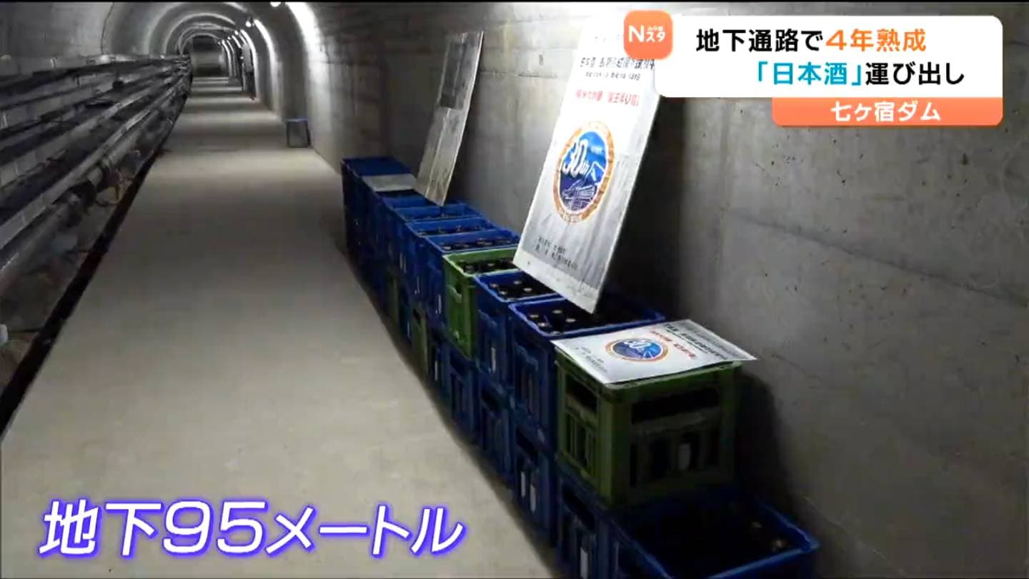 宮城県七ヶ宿町にある七ヶ宿ダム。そのダムの地下95メートルにある通路で保管されているのは、白石市にある蔵元、蔵王酒造の日本酒です。