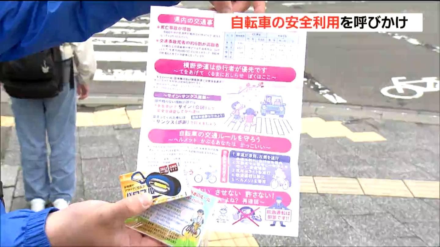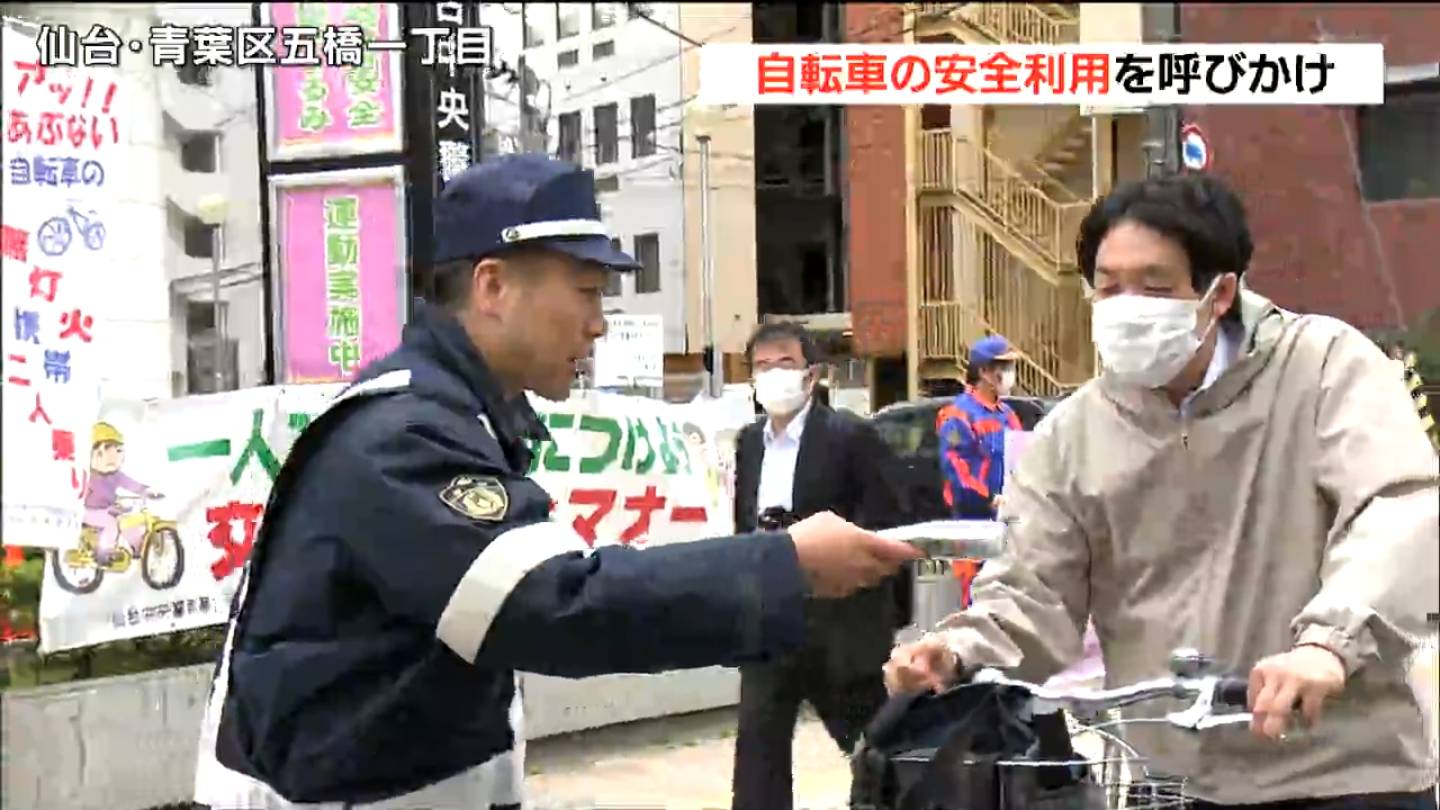 春の交通安全運動にあわせ4月15日、宮城県内の学校や交差点で、自転車の安全利用を呼びかけるキャンペーンが行われました。