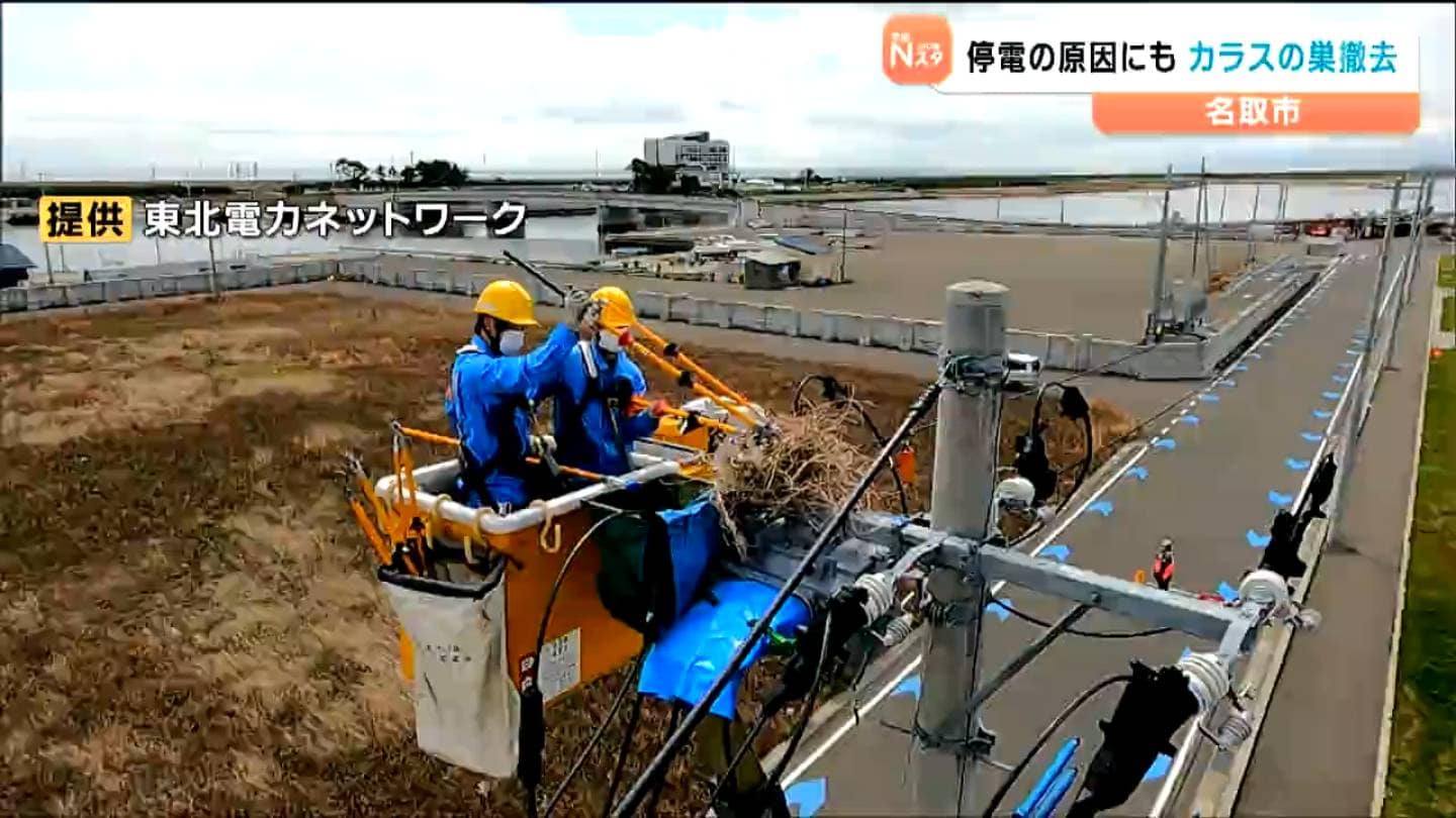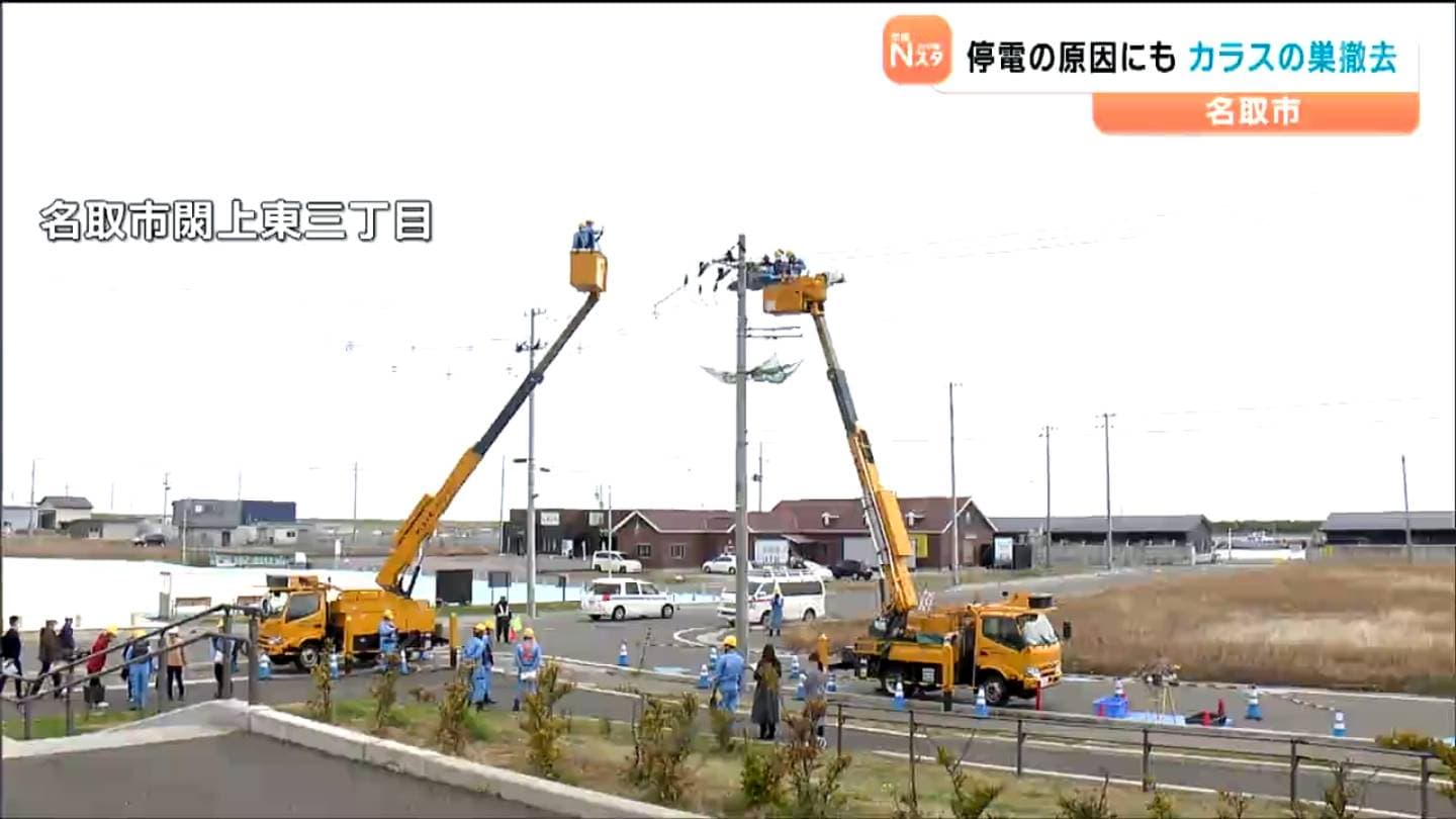 カラスの巣は、木の枝やハンガー、針金などでできていて、電線に触れると漏電し停電の原因となります。東北電力ネットワークによりますと、去年は雪が少なかったことなどから巣の数は増えていて、そのうち停電の原因になり得るものを撤去しているということです。