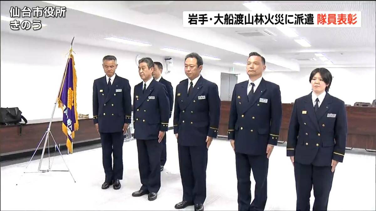 岩手県大船渡市で発生した山林火災で、現地に派遣されていた仙台市消防局の隊員らが市長から表彰されました。
