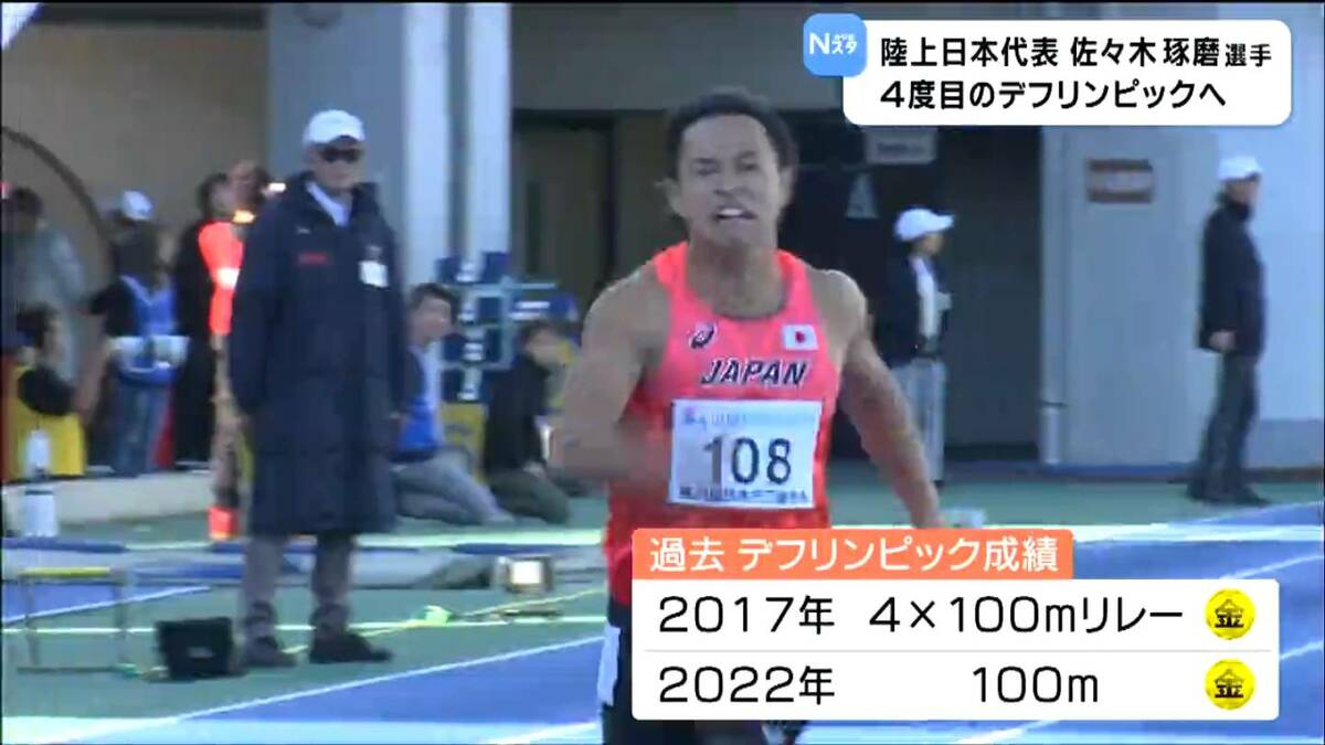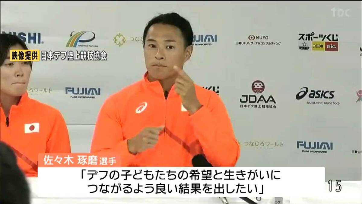陸上の日本代表として会見に臨んだのは仙台大学職員の佐々木琢磨選手です。佐々木選手は過去3回デフリンピックに出場。2017年大会では、4×100mリレーで金メダル。2022年大会では、男子100mで日本人で初めて金メダルを獲得した、世界で活躍するトップアスリートです。