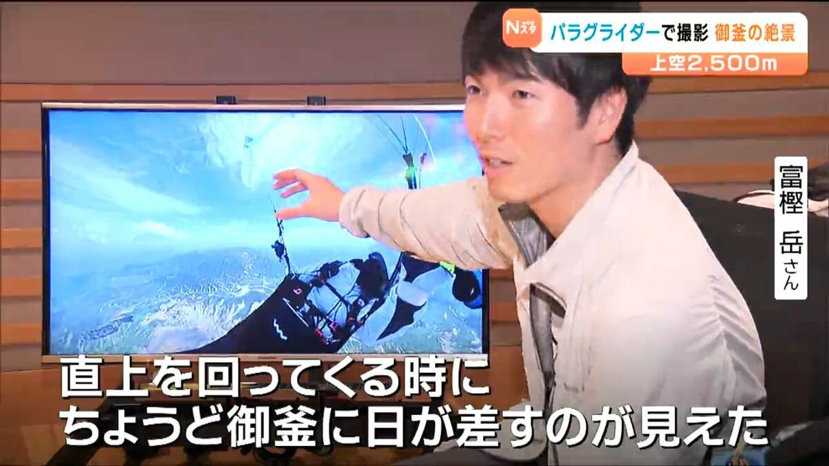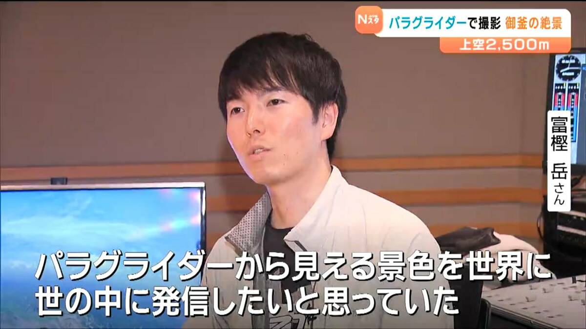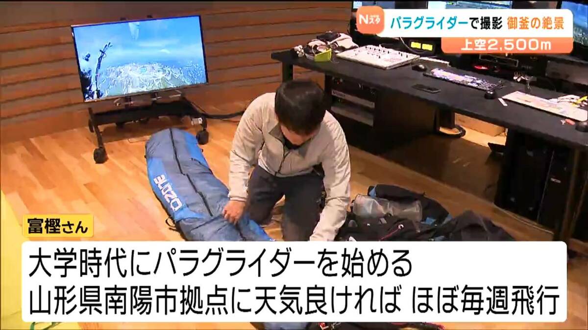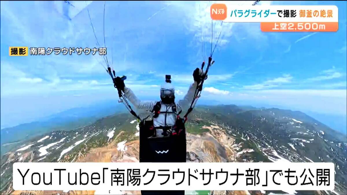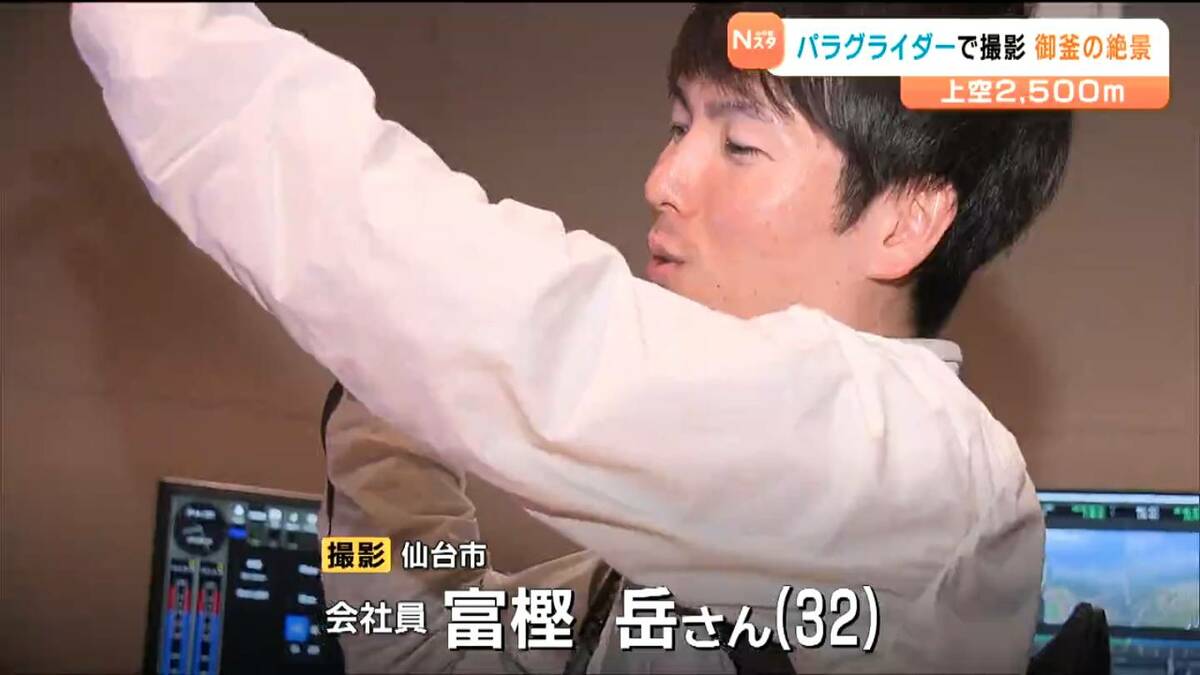 6月に仙台市の会社員の男性が、パラグライダーで上空約2500メートルから蔵王の御釜を撮影しました。映像には、地上や航空機からでは見ることのできない絶景が広がっていました。