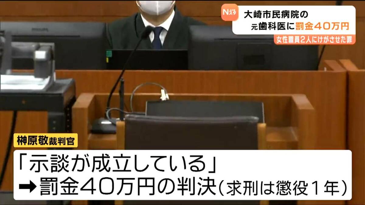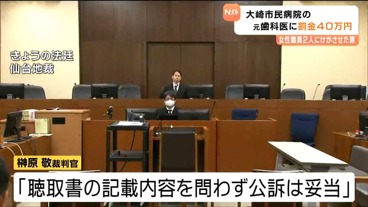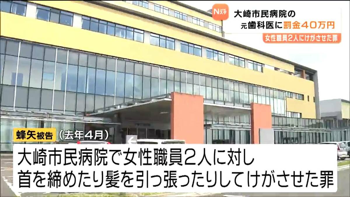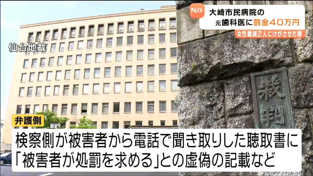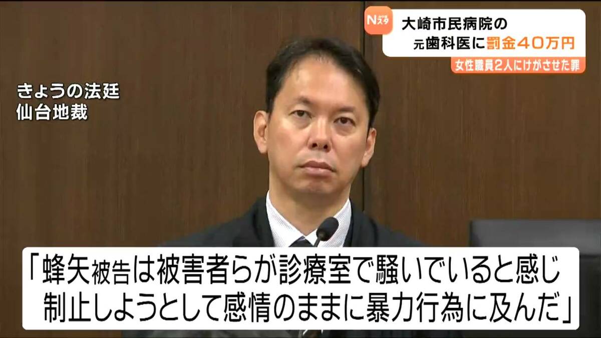 2024年4月、宮城県の大崎市民病院で女性職員2人に暴行を加え、けがをさせた罪に問われている元歯科医の男の裁判で、仙台地方裁判所は男に罰金40万円の判決を言い渡しました。