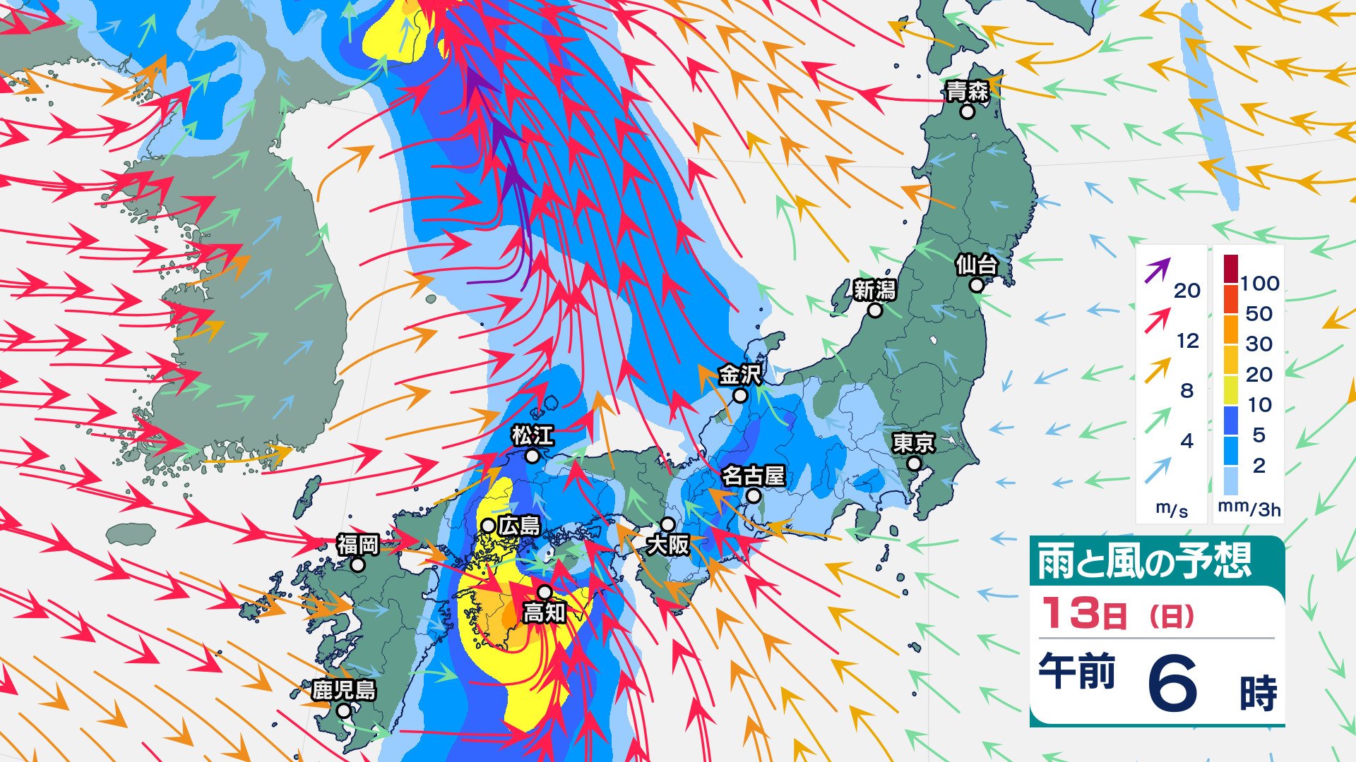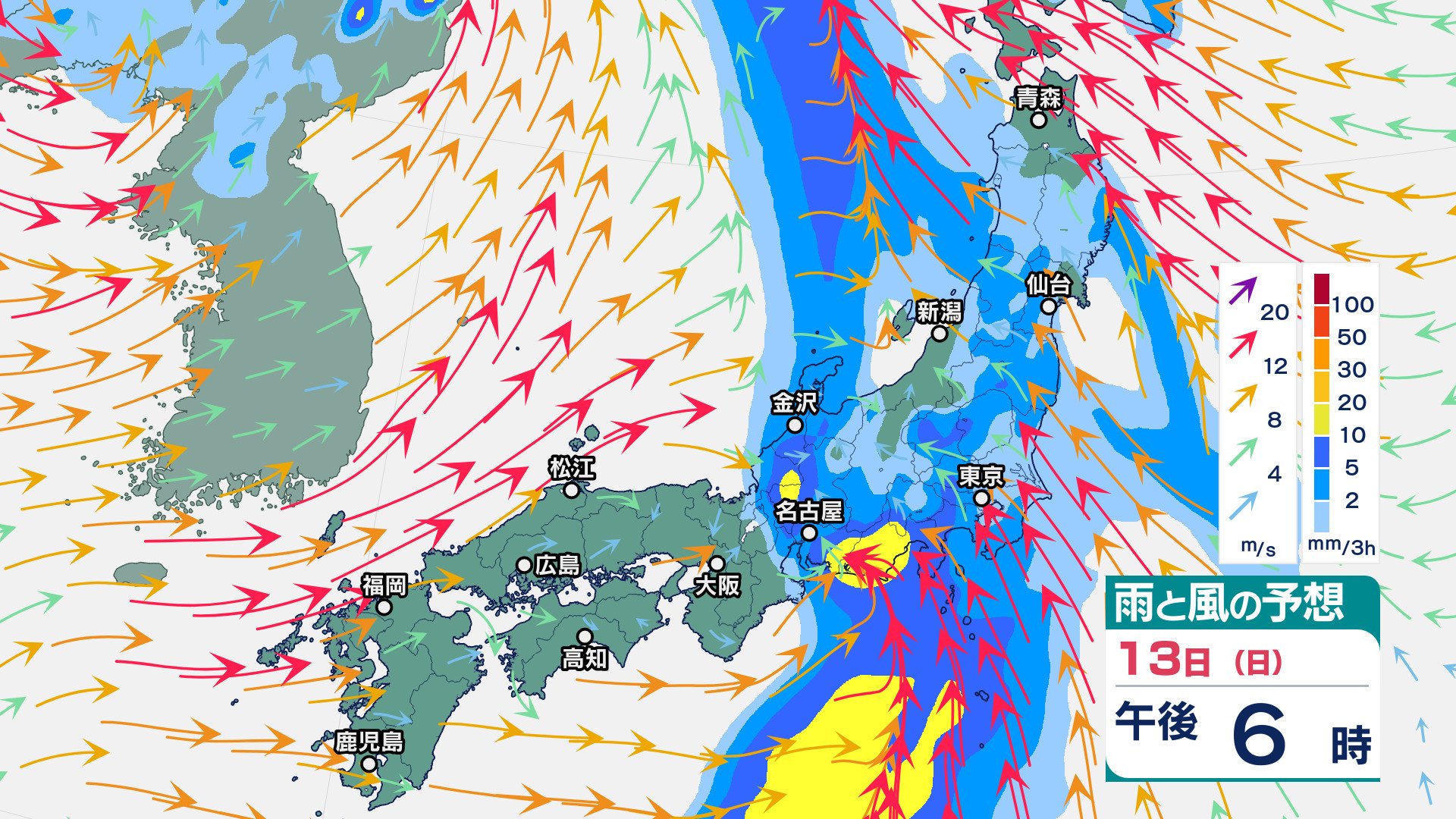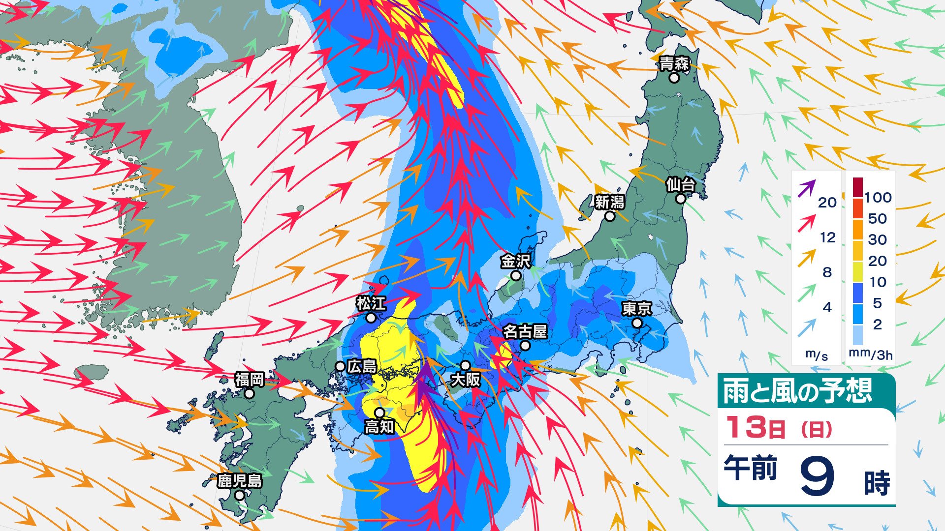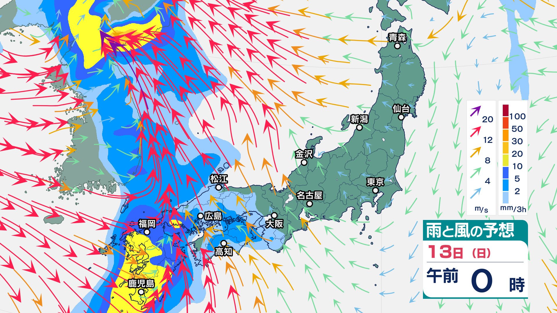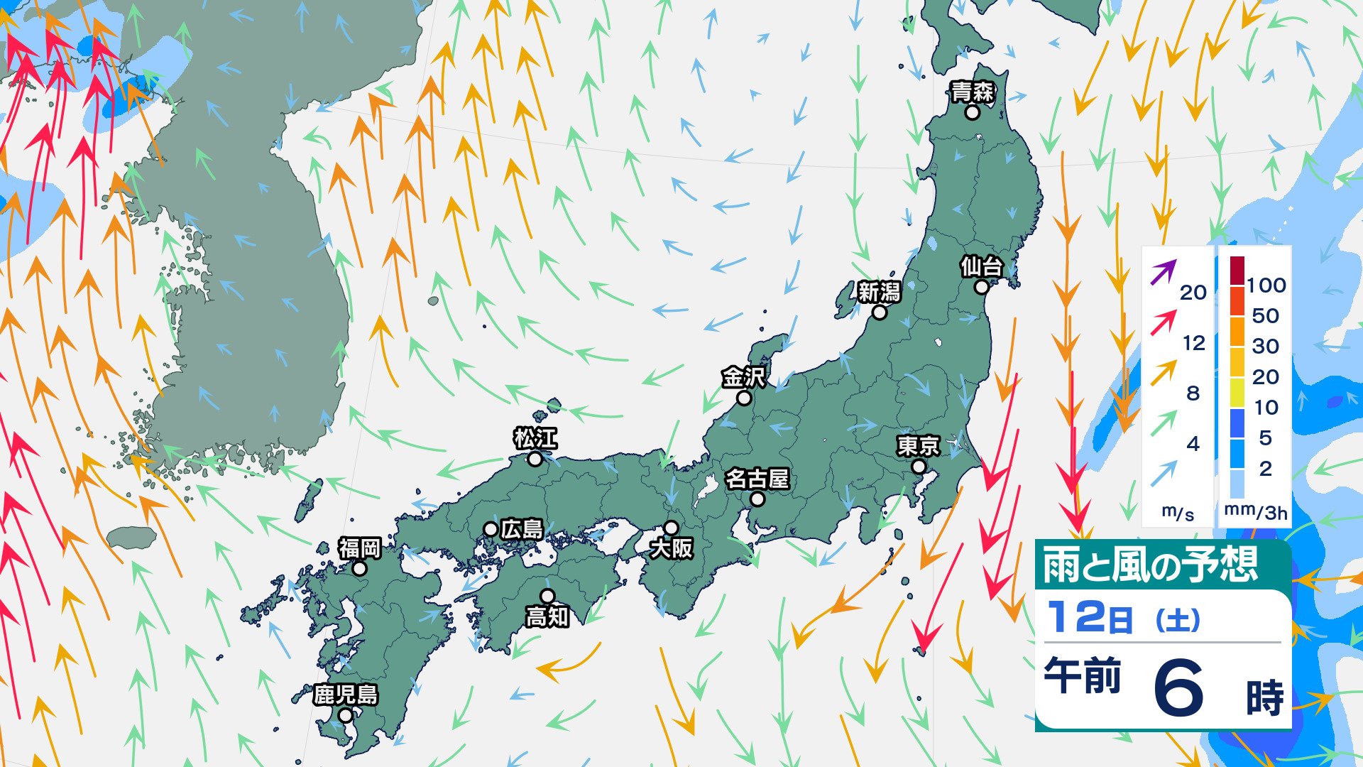 次に3時間ごとの雨と風のシミュレーションを見ていきます。