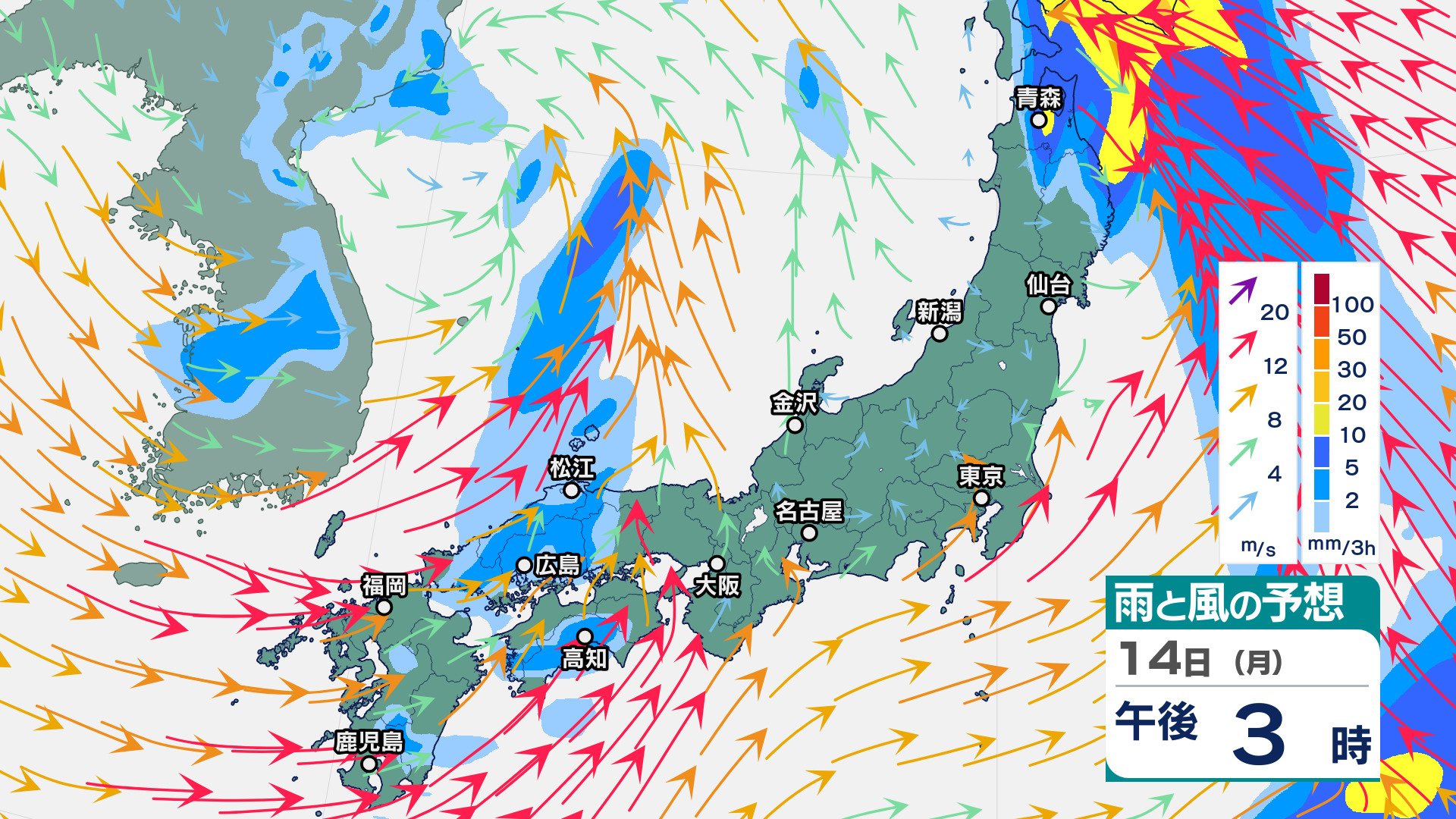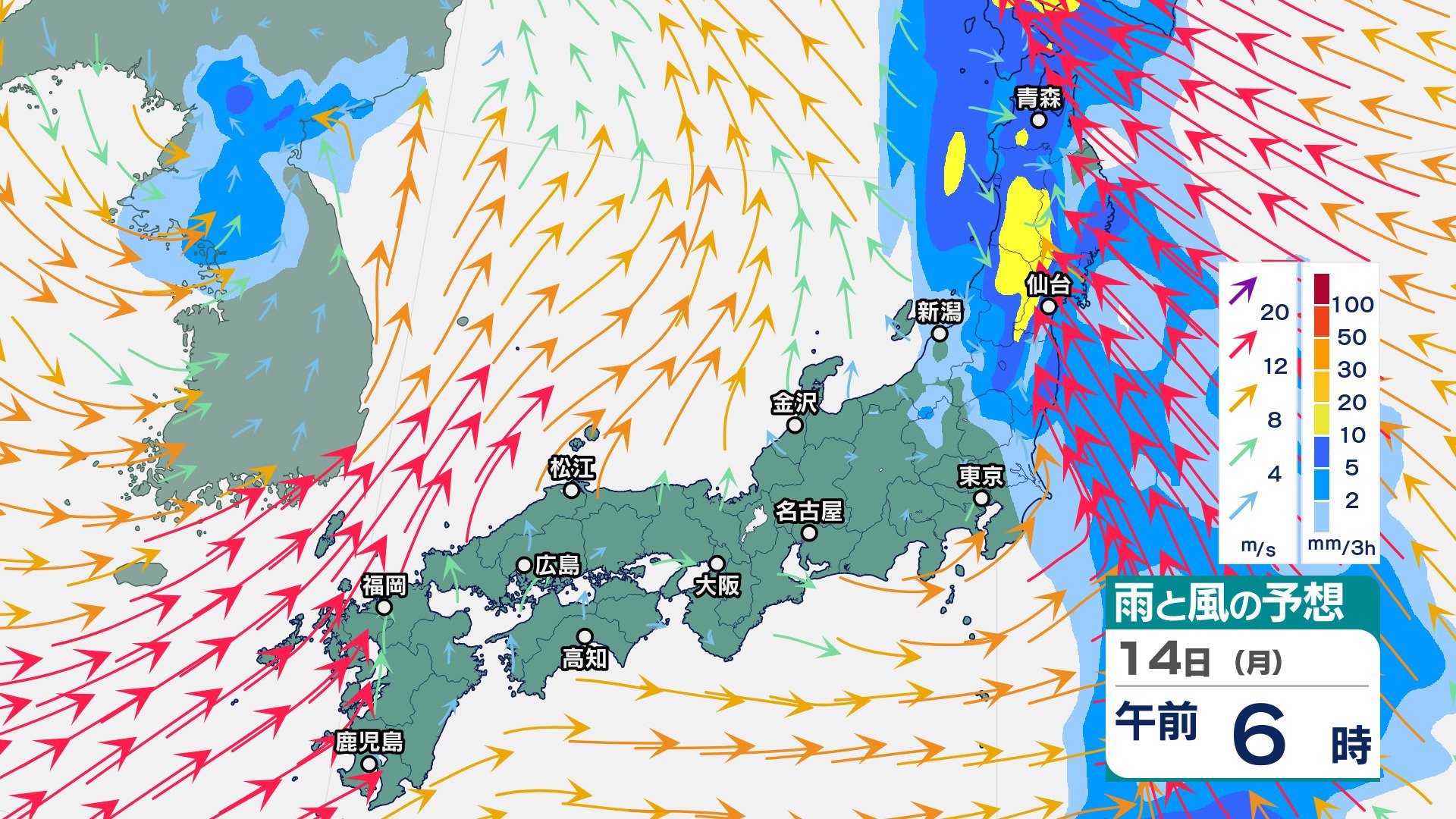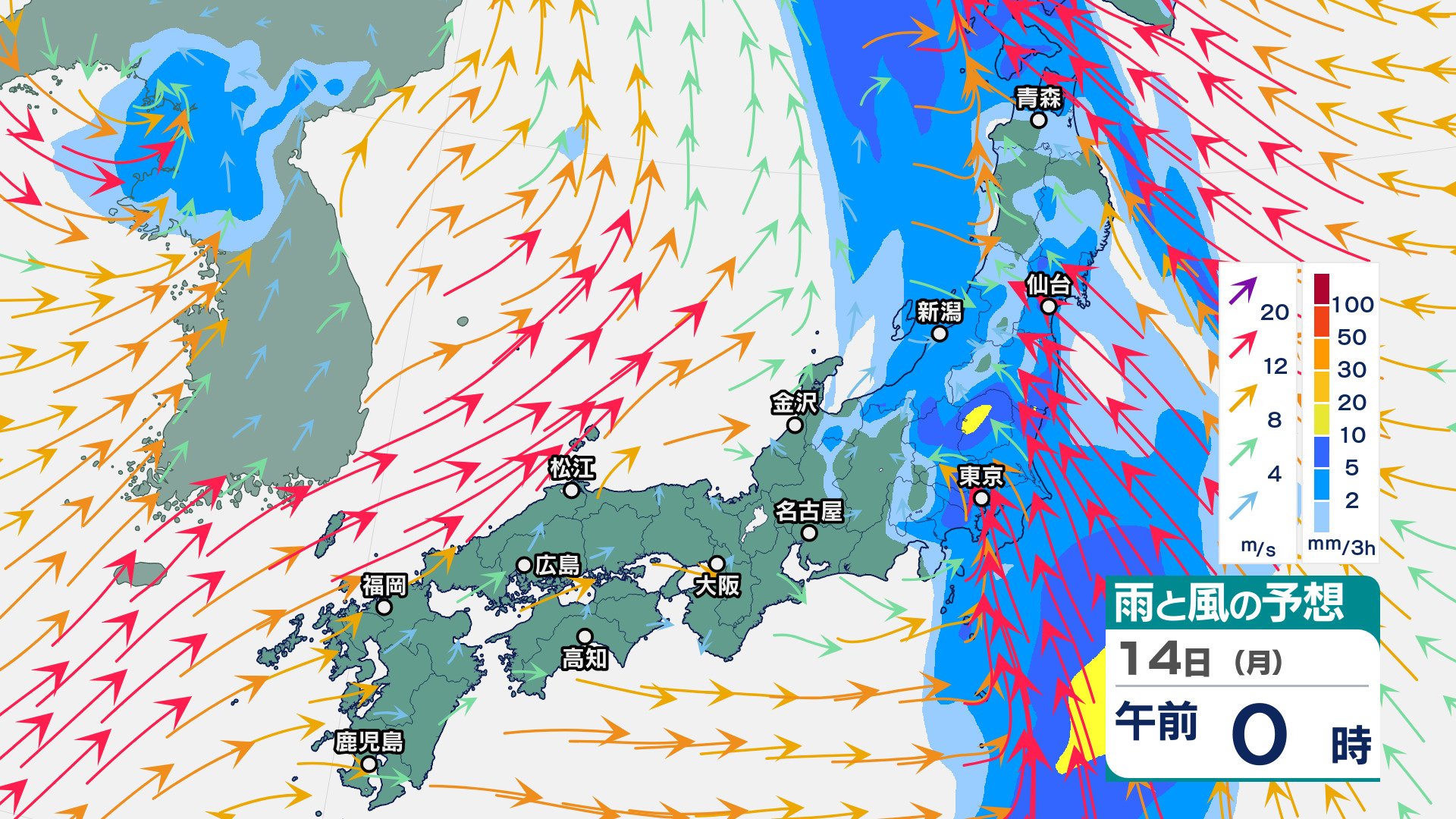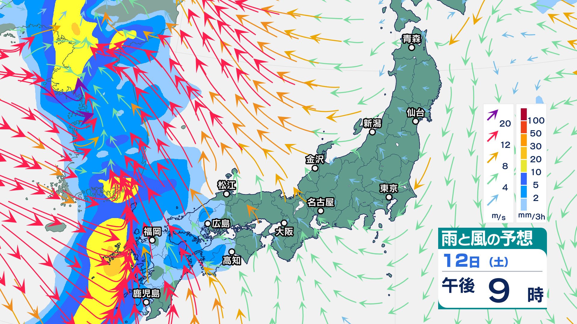次に3時間ごとの雨と風のシミュレーションを見ていきます。