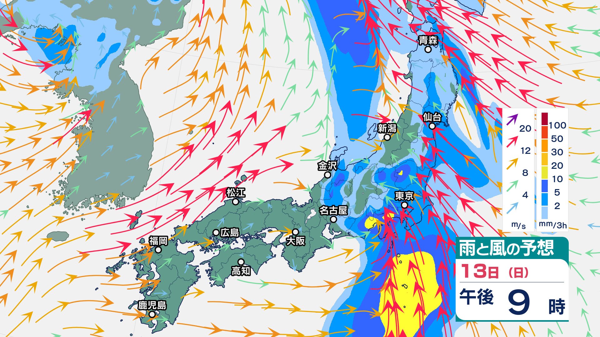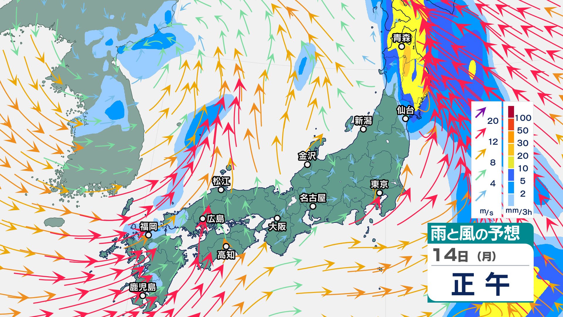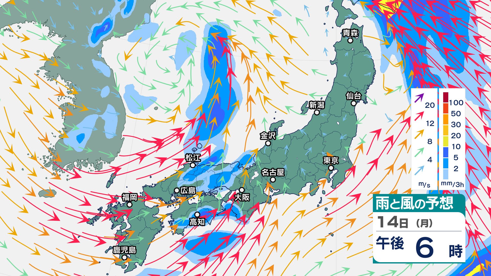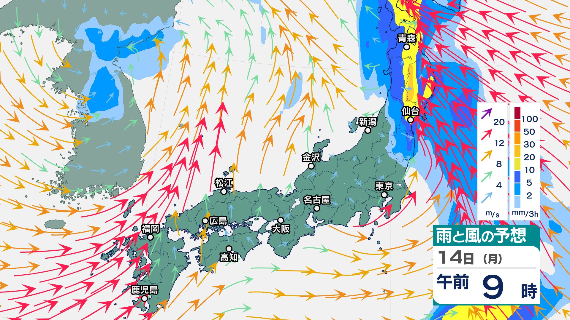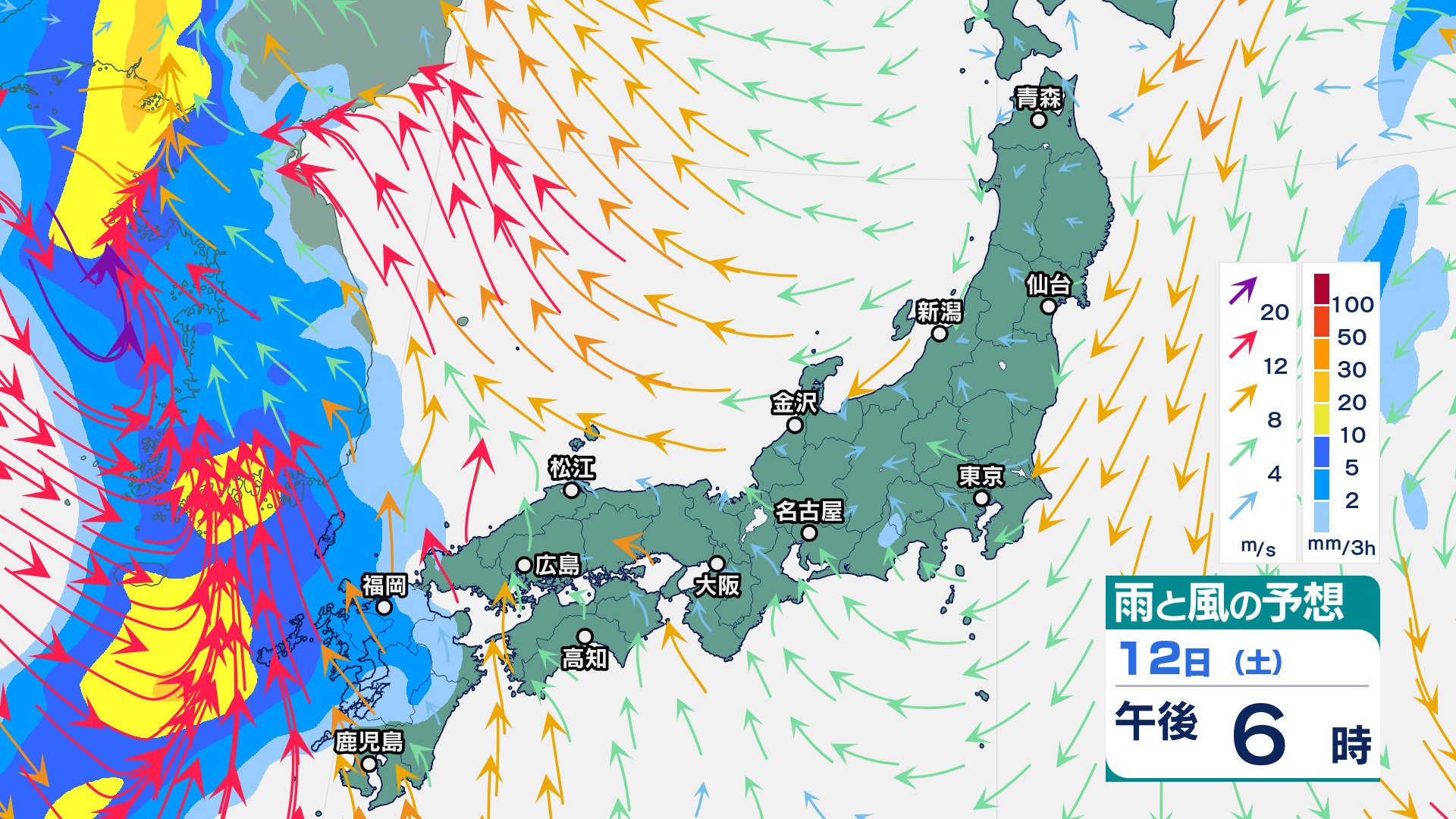 次に3時間ごとの雨と風のシミュレーションを見ていきます。