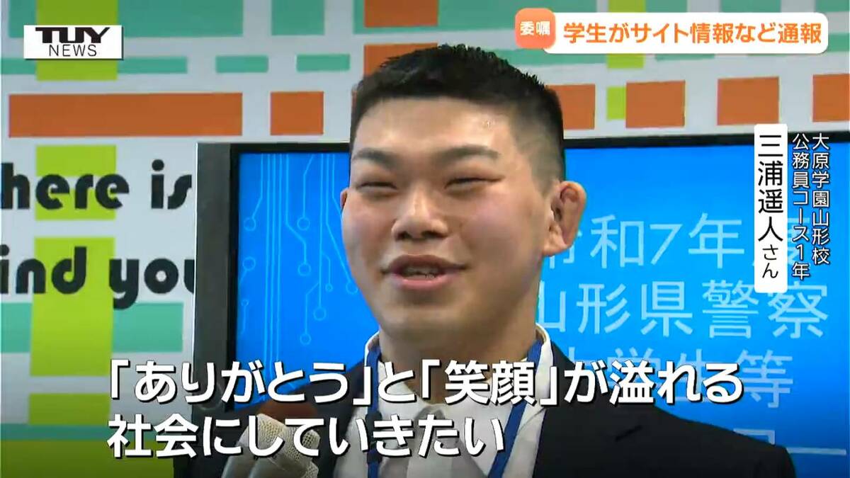 大原学園山形校 公務員コース1年 三浦遥人さん「自分はありがとうという言葉が大好きで、闇バイトとかはそういう言葉に縁のない行為だと思う。ありがとうと笑顔が溢れる社会にしていきたい」