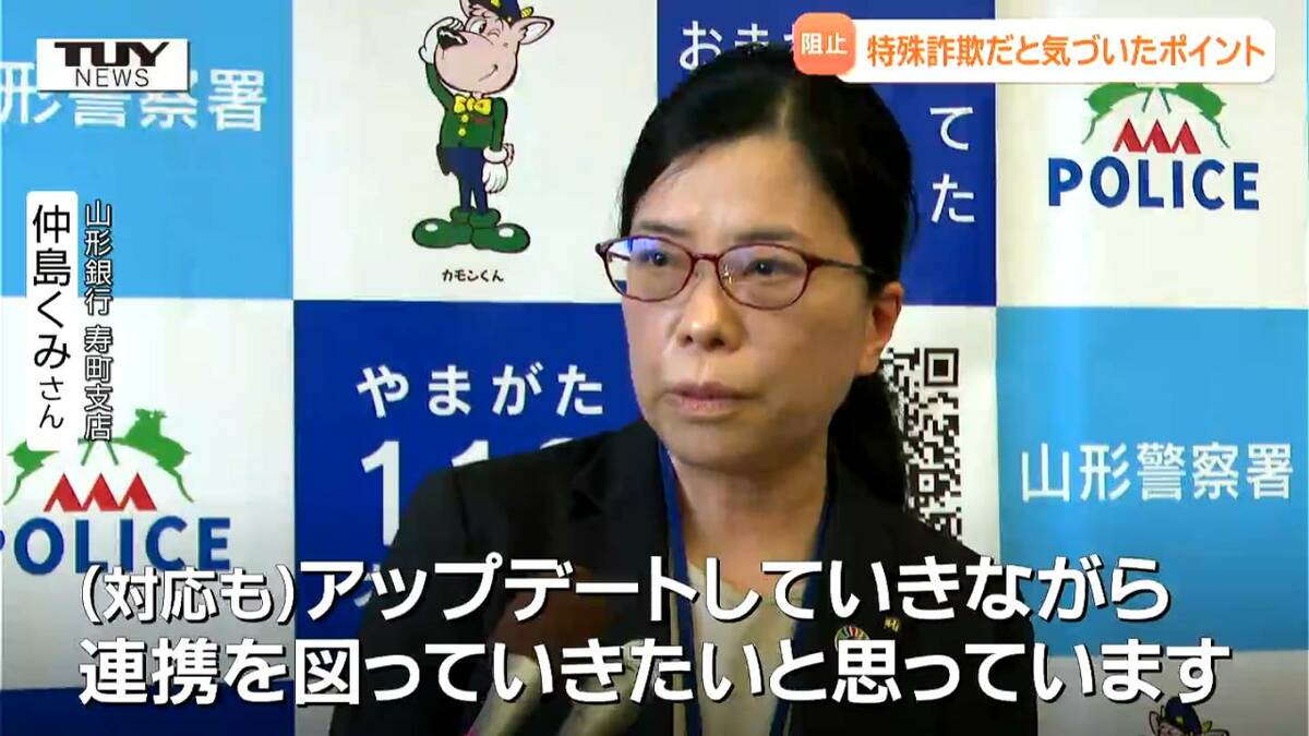 山形銀行寿町支店 仲島くみさん「引き続きアンテナを高くして詐欺の手口が巧妙になっていっているものですから、(対応も)アップデートしていきながら連携を図っていきたいと思っています」