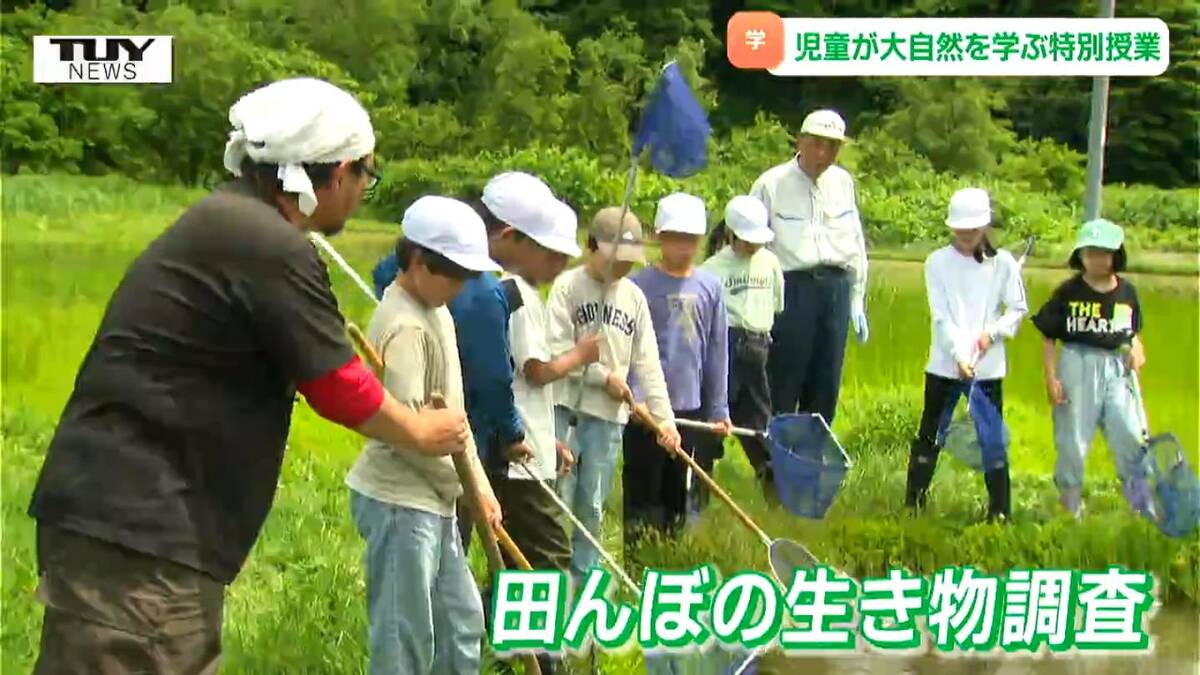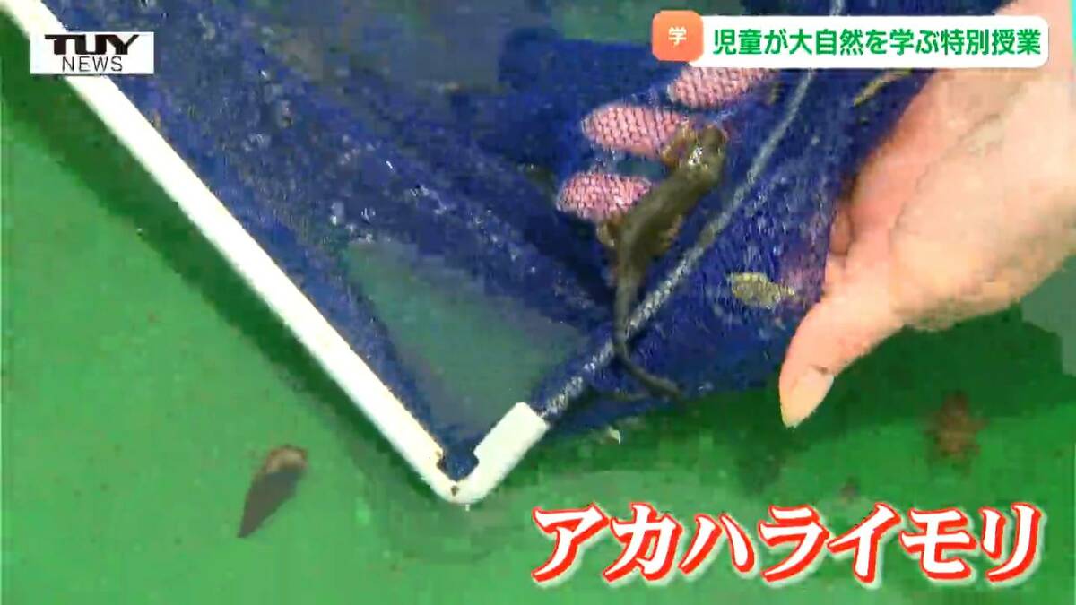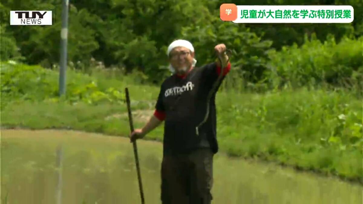 山形県大江町で、きょう自然の豊かさを感じる体験学習「冒険学校」が開かれ、児童たちが自分たちの住む町の生き物たちと触れ合いました。