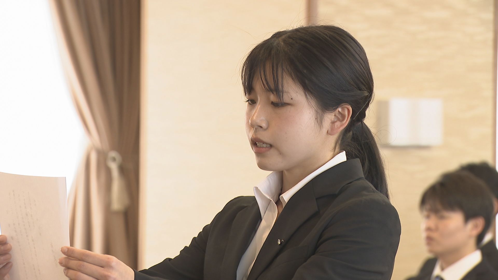 「山口県民のみなさんに寄り添えるような県職員になりたいです。新しく新生活が始まるので、それも慣れるかとても不安なんですけど一生懸命頑張りたいと思います」