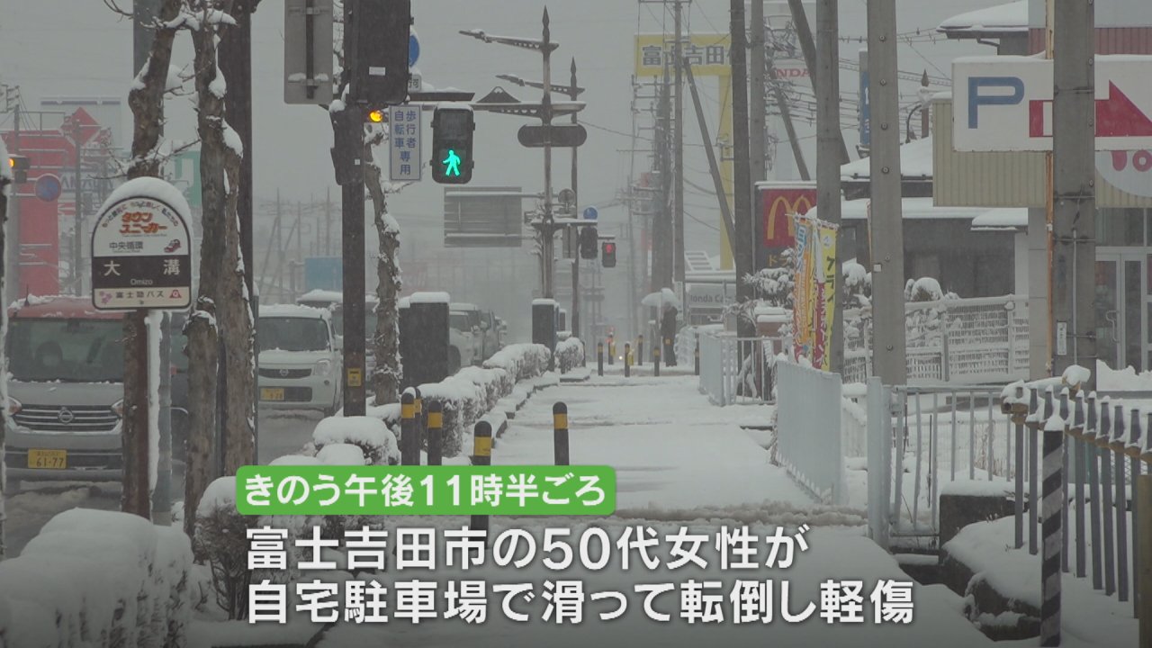 今回の雪の影響で3月31日午後11時半ごろ、富士吉田市の50代の女性が自宅の駐車場で滑って転倒し軽いけがをしました。
