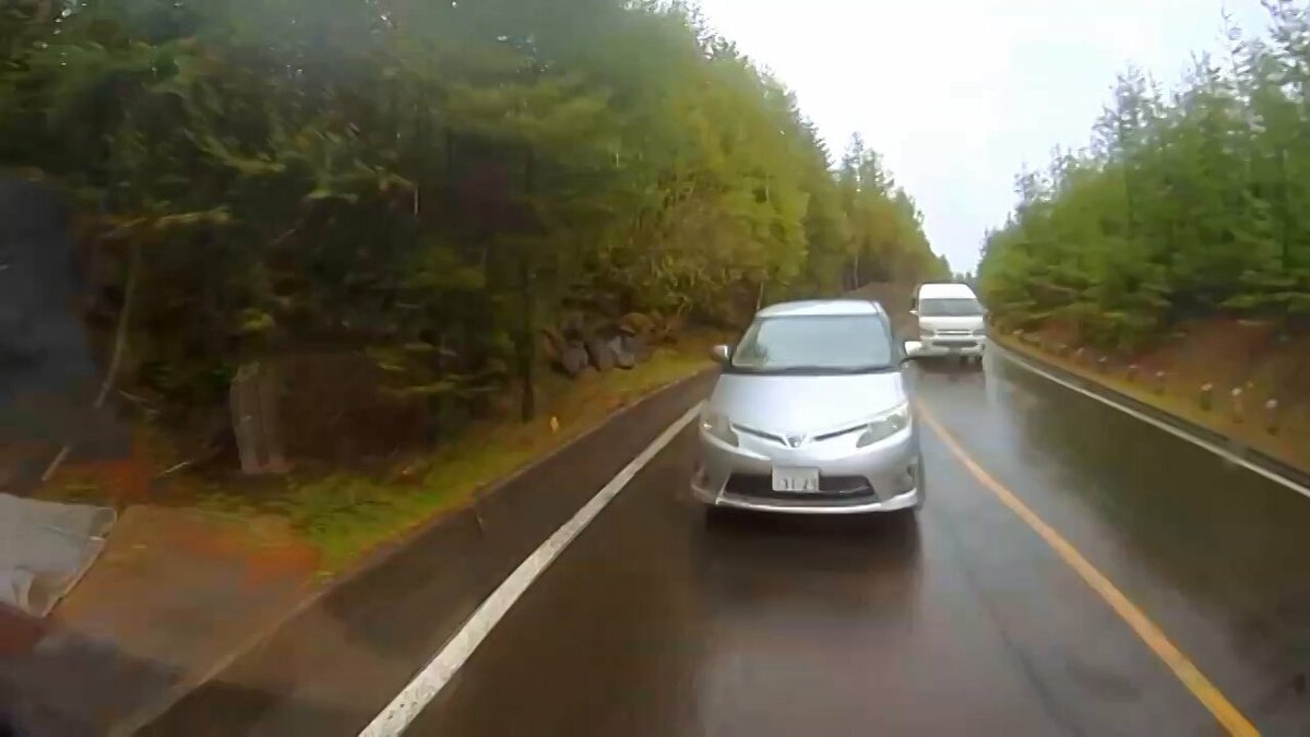 現場は5合目から3kmほど下ったカーブのある道で、観光バスのドライブレコーダーには乗用車がセンターラインを越えて観光バスに衝突した様子が映されていました。