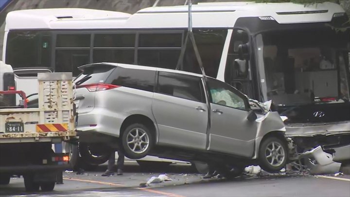 11日午前、山梨県の富士スバルラインで乗用車と観光バスが正面衝突する事故がありました。