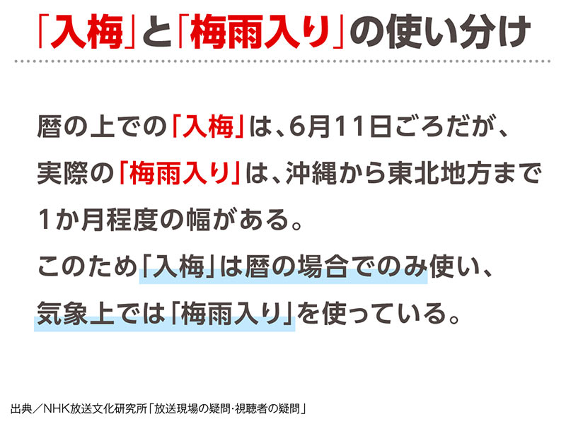 NHKでは「梅雨入り」と「入梅」を使い分けている