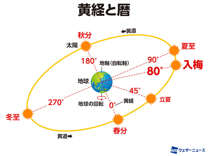 入梅とは「黄経(こうけい)80°」のこと!?