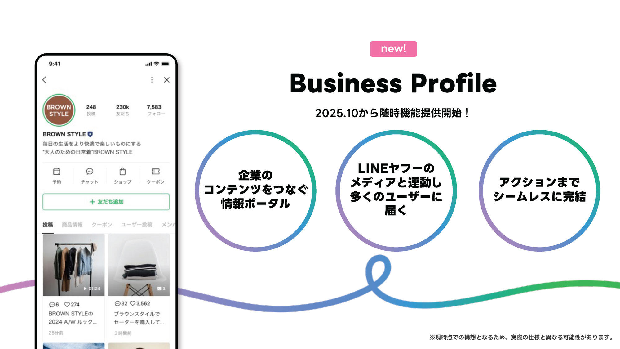LINE公式アカウントのトップ画面が進化し、Business Profileとして生まれ変わる。LINE公式アカウントは、メッセージアプリという印象があるが、その概念を変えながらビジネスポータルの役割を担える新機能が追加される。この機能は、2025年10月以降に随時提供される予定だ。