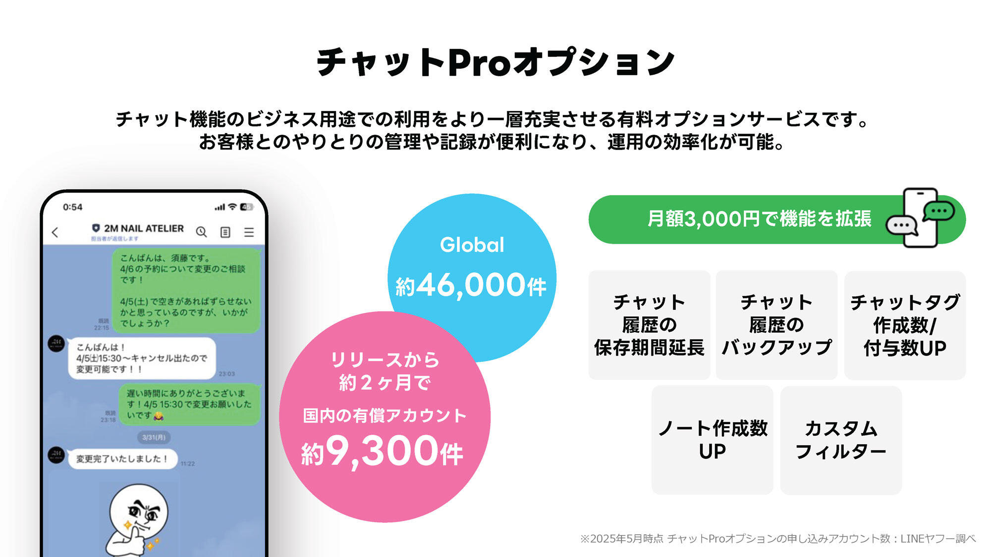 チャットProオプションは、リリースから約2か月で日本国内では9,300件、グローバルでは46,000件がすでに利用されているという。