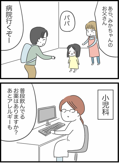 娘を保育園に迎えに行き、そのまま病院に連れて行った友人・かなの夫。