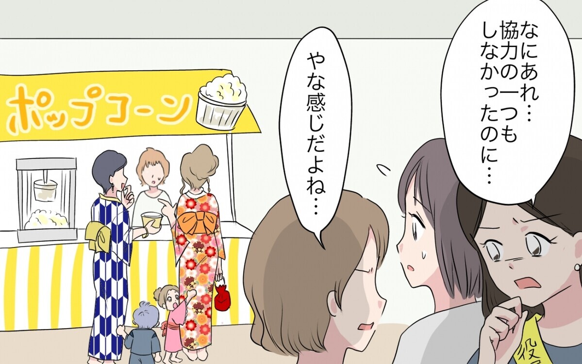 ・子どもの保育園で毎年強制の保護者会活動で夏祭りの準備を週に3、4回夜の10時まで下の1歳の子を実親に預けて、義実家は義父が要介護状態なのに手伝えず、保育園行事を強制されて、嫌がらせもあり、やらないとすぐに陰口がある状態で大変でした。なので、夏祭りの準備をしないから悪と言うのは微妙です。
