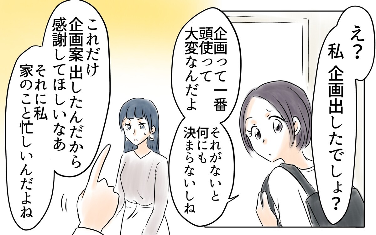 案だけ出して働いた気になってるママ…打ち上げに呼ばれない理由がわかってないみたい。読者からツッコミの嵐が。