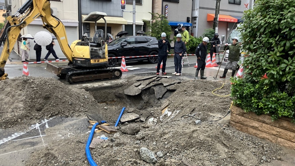 10日午後、神戸市中央区で「道に穴が開いている」と申告がありました。周辺の道路が一時通行止めになりました。