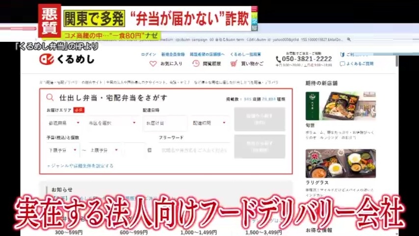 「うちの奥さんが携帯でネット検索して、『くるめし弁当』って調べたら、きちっとしたホームページで。ちゃんとした企業さんで、そこを騙っていたんです。それを見て、信じてしまった。6月2日(月)の午前11時までにお弁当が届く予定だったんですけど、11時を過ぎても来なくて…」